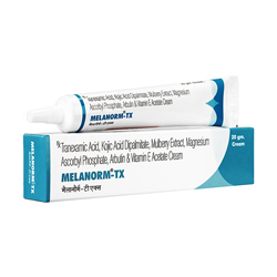 Tranexamic Acid IP 10.0% w/w, Kojic Acid Dipalmitate 2.0% w/w, Mulberry Extract 1.0% w/w, Magnesium Ascorbyl Phosphate 1.0% w/w, Arbutin BP 1.5% w/w, Vitamin E Acetate IP 1.0% w/w, In a Cream Base q.s.